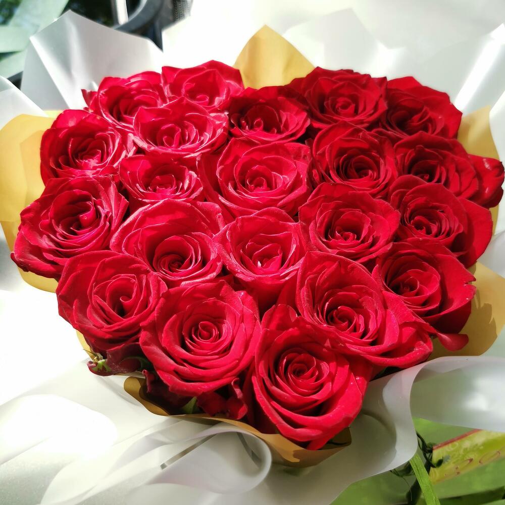 Красное сердце из 21 крупной красной свежей розы не оставит вашу принцессу равнодушной в праздник всех влюбленных и на день рожедния.
